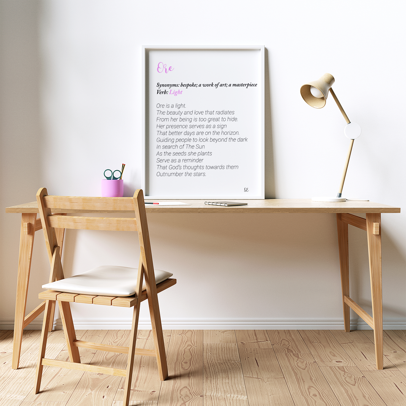 Bespoke Definition Framed Poems to frame your unique identity or gift to someone else! Wake up ready to make progress in fulfilling your destiny!