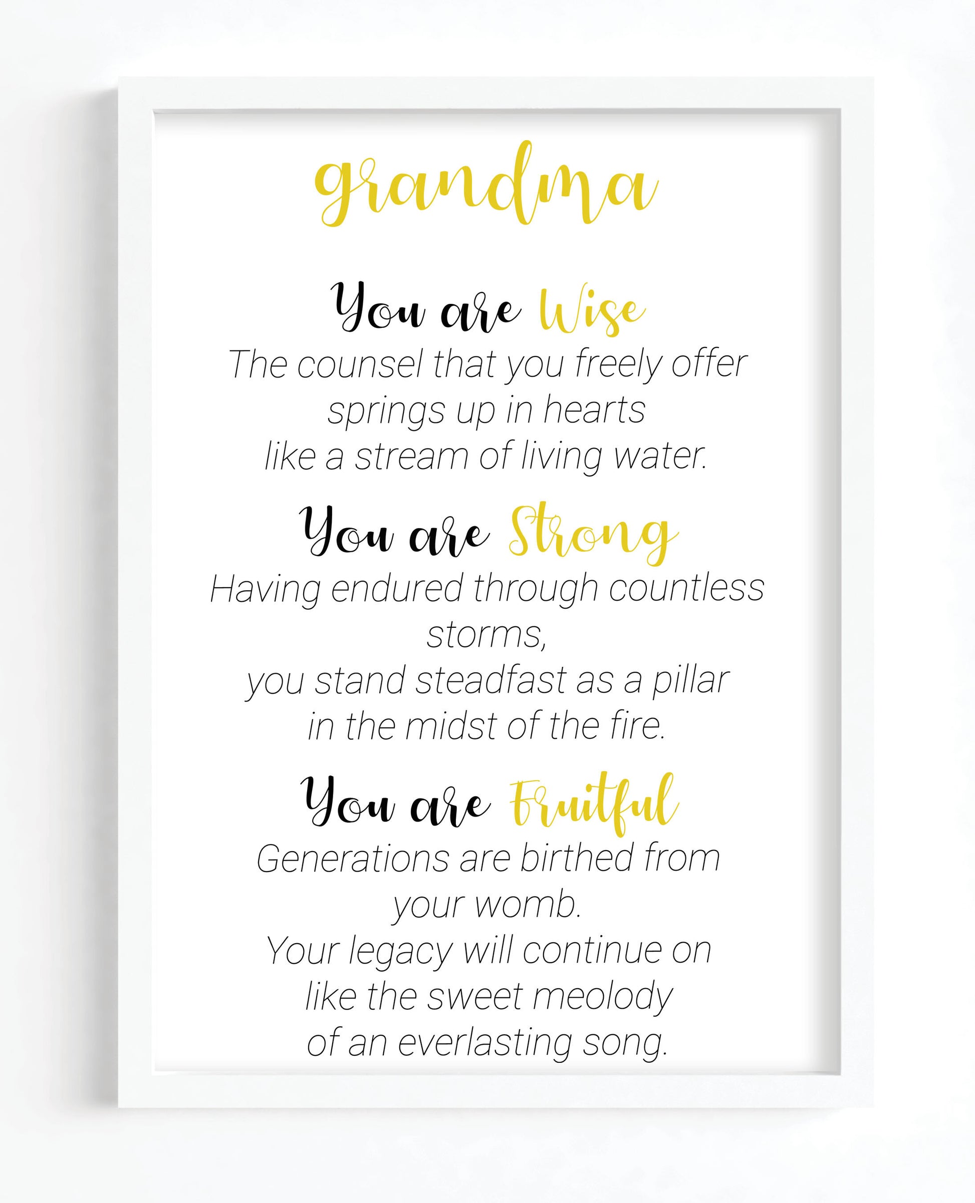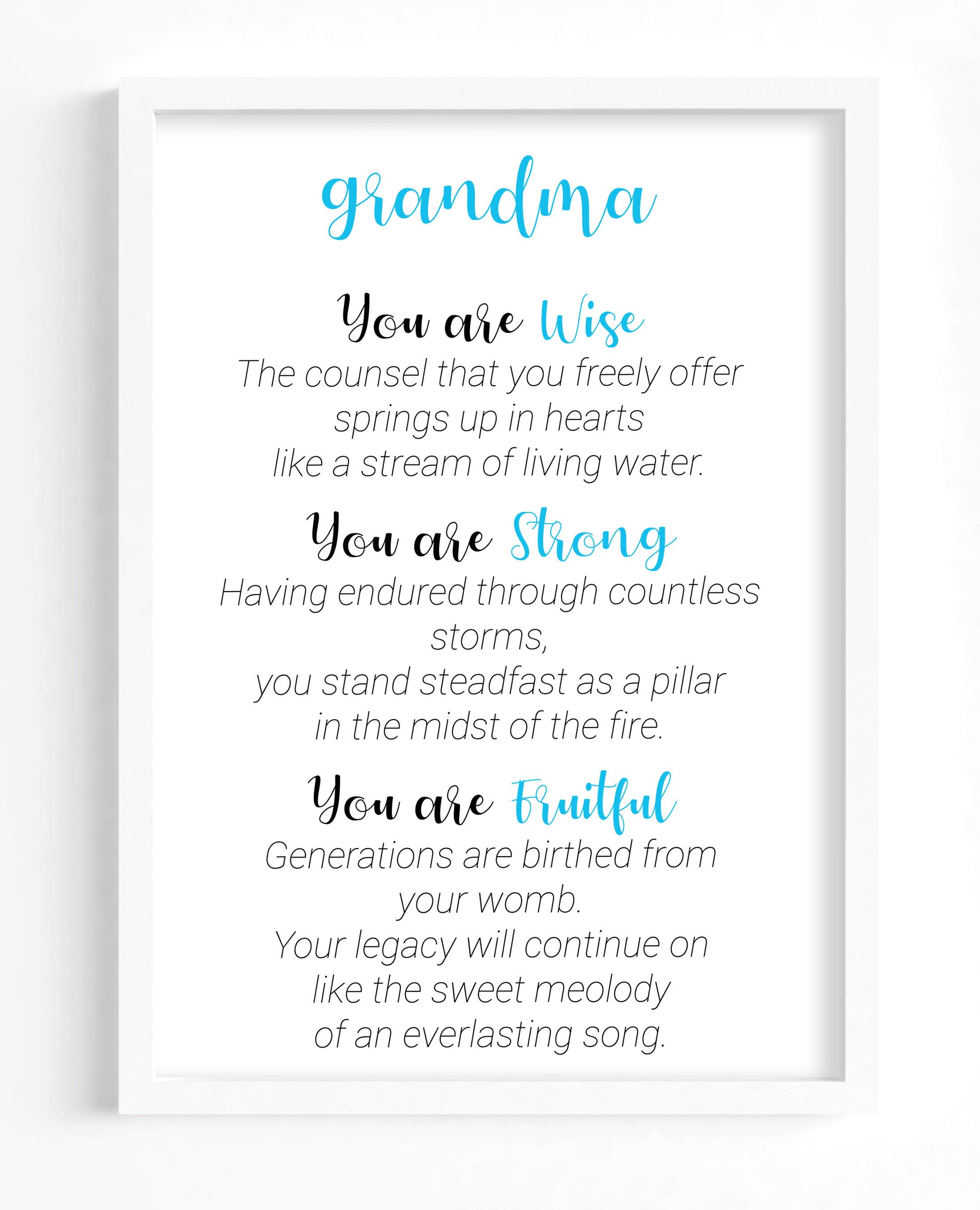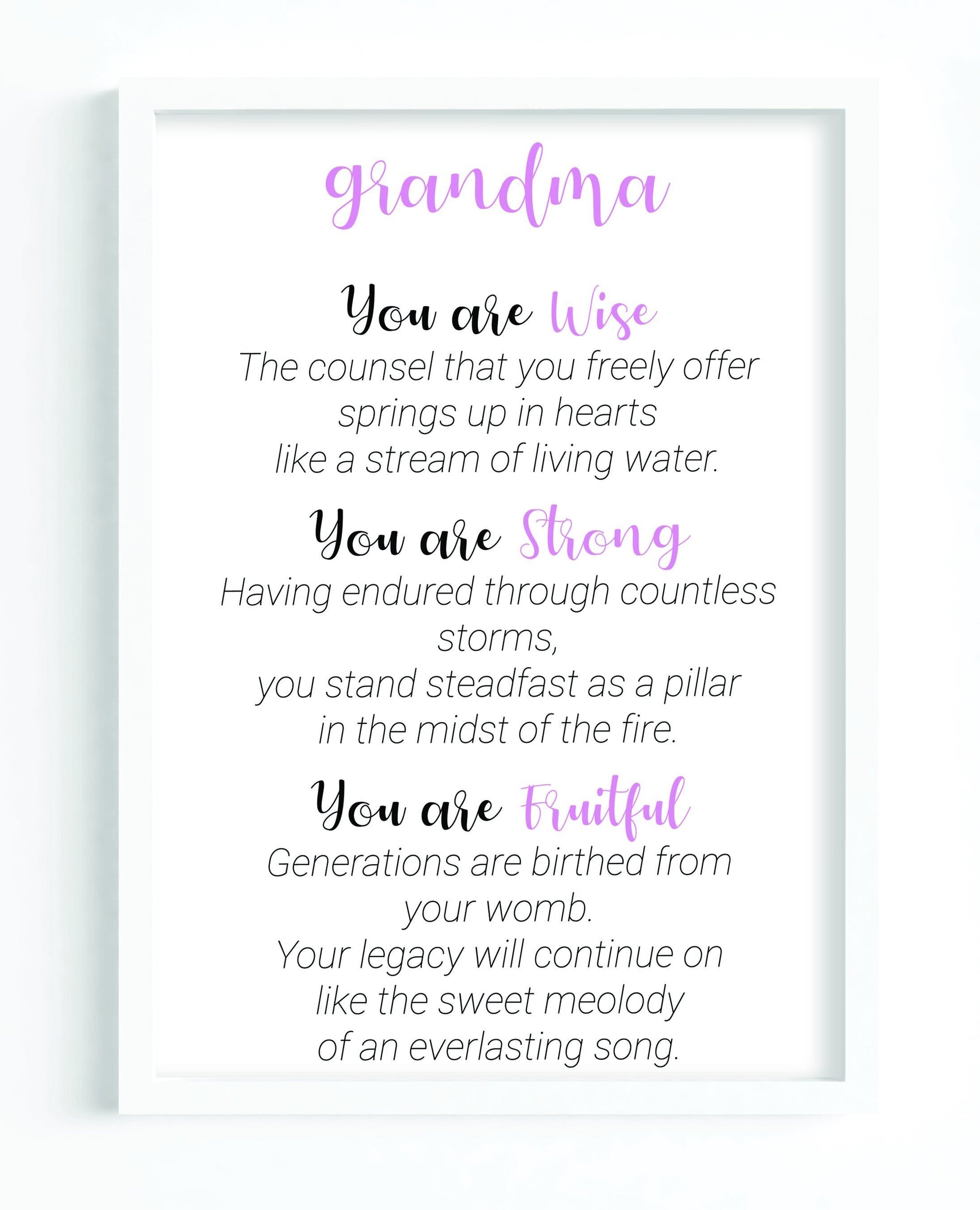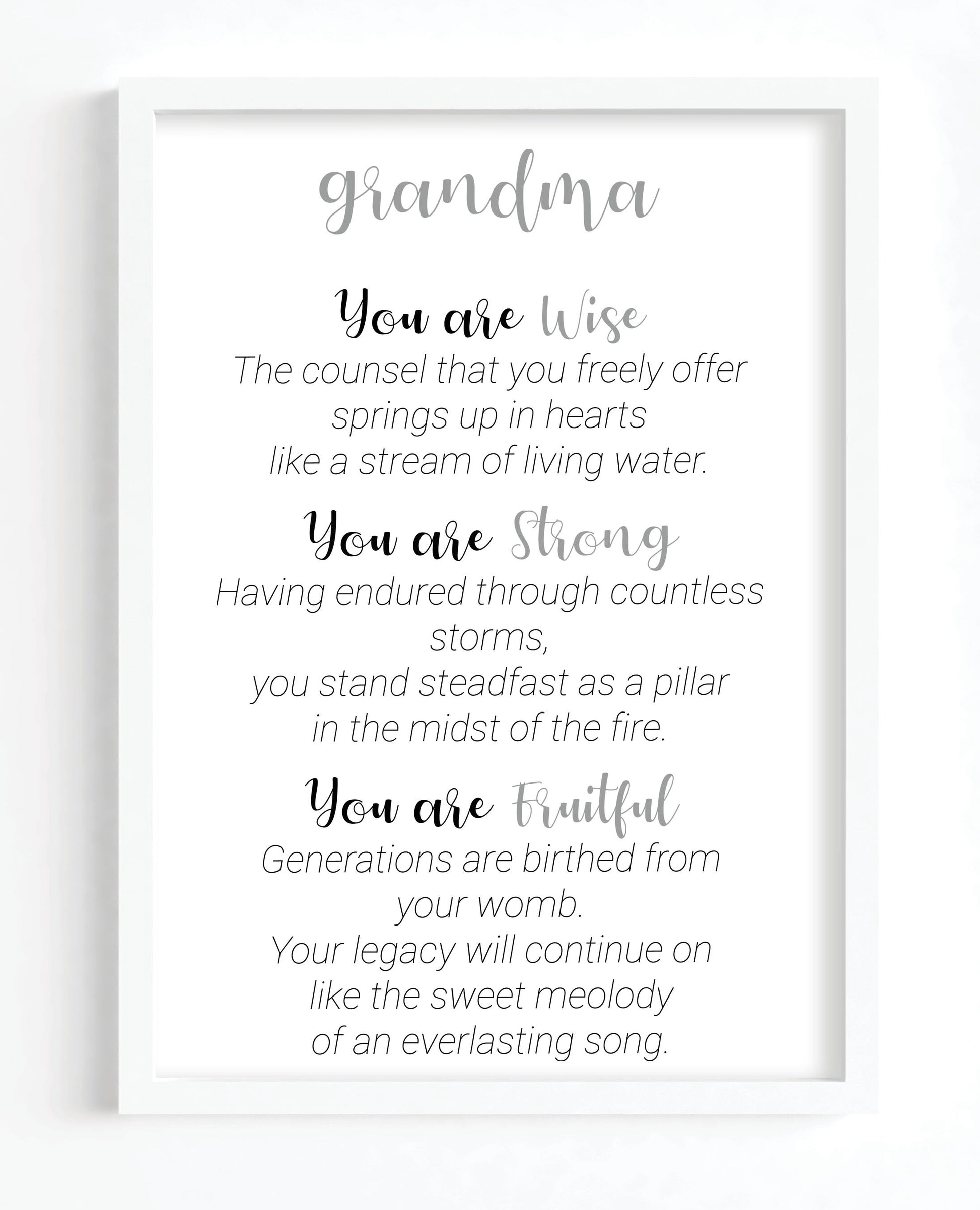Wise, Strong and Fruitful describes Grandma.